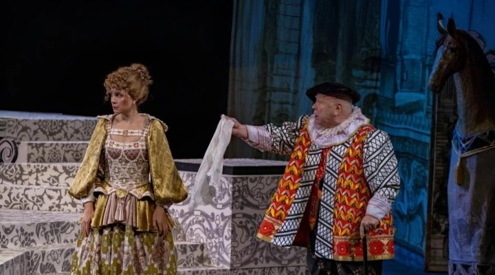 Петруччо, ведомый желанием разбогатеть, не боится строптивости Кати, утверждая: «она строптива, но и я упрям». В результате на сцене разворачивается феерия фарсовых ситуаций, обманов, подмен и переодеваний, связанных с женихами Бьянки, что только усиливает главную интригу. Гротескные сцены и остроумные диалоги доводят зрителей до смеха, а искренние чувства, возникающие между Петруччо и Катариной, придают постановке особую глубину.